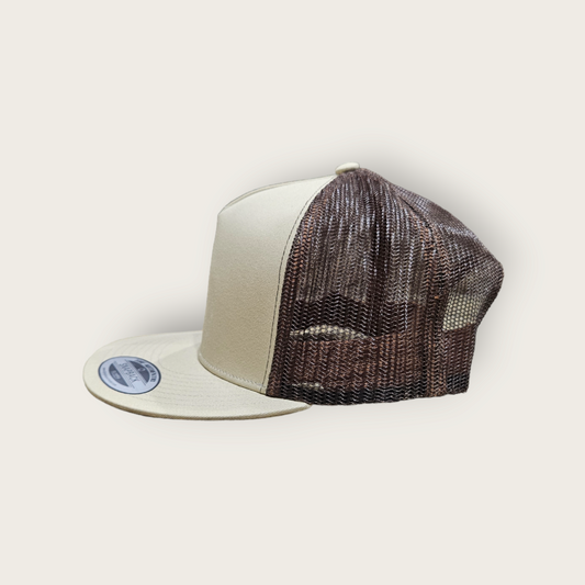 5 Panel Khaki/Brown Trucker Hat Snapback 105C