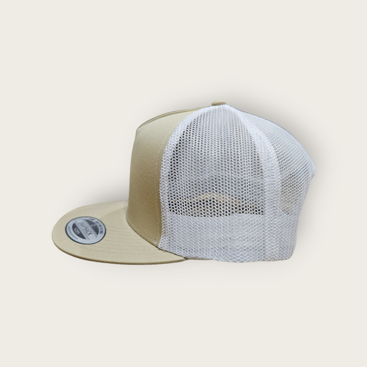 5 Panel Khaki/White Trucker Hat Snapback 105C
