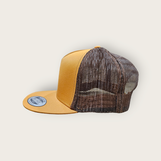5 Panel Gold/Brown Trucker Hat Snapback 105C